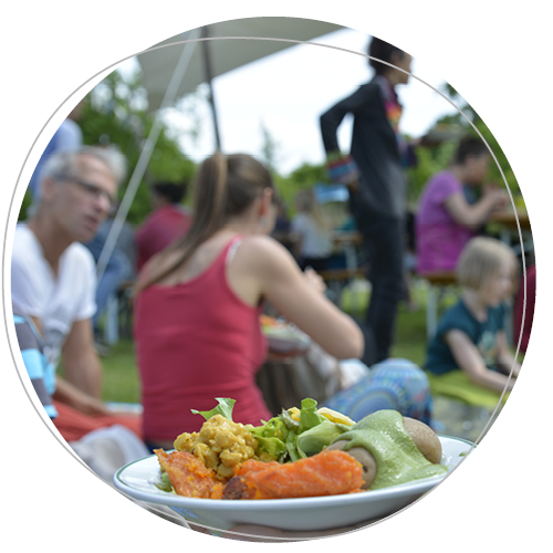 Unser Küchenteam sorgt für leckere Mahlzeiten, frisch aus unserem Gemeinschaftsgarten, vegan-vegetarisch, saisonal, bio, fair. Für zwischendurch stehen warme Getränke und saisonales Obst und Rohkost bereit. In längeren Pausen gibt es auf Spaziergängen durch das Ökodorf und unseren abwechslungsreichen Selbstversorgergärten viel zu entdecken. Oder mal schnell in unseren Teich springen? Sauna, Volleyballfeld, Lagerfeuerstelle u.a. bieten vielfältige Möglichkeiten.
