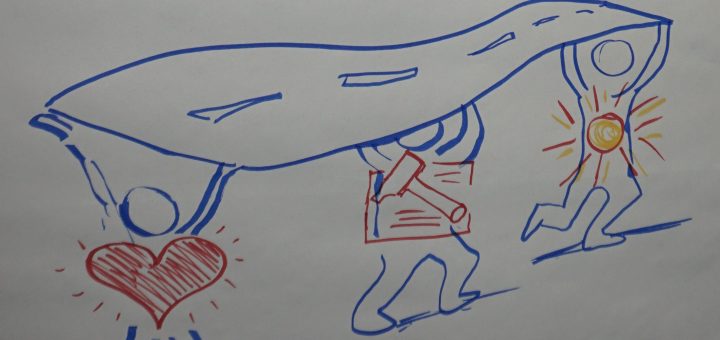 Wir haben in den ersten Tagen um die Frage gerungen, was jetzt eigentlich dran ist fürs Ökodorf. Die Antwort war, dass es einen Dreiklang braucht aus gemeinsamem Schauen auf die Vision, Anpassung der Strukturen und Arbeit an unserer Verbundenheit.