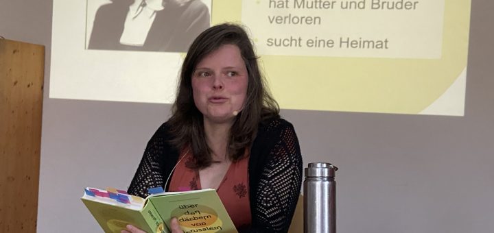 „Kann das alles noch gut enden?“ fragt jemand. Anjas Antwort bleibt vage. „Ich will Hoffnung haben“ sagt sie – und die Formulierung ist bewusst gewählt. Es ist ein Wollen, dass den Blick auf die Chancen und nicht auf das aktuelle Kriegsgeschehen lenkt. Sie nennt einige Initiativen (unten im Artikel), die für Begegnungen und Versöhnung zwischen den palästinensischen und iraelischen Menschen arbeiten. Und natürlich sind die Lesungen „Über den Dächern von Jerusalem“ an Schulen und anderen Orten auch Bausteine für ein erweitertes Verständnis des Konfliktes Israel – Palästina, mit dem wir vielleicht unsere deutsche Außenpolitik anders reflektieren können.