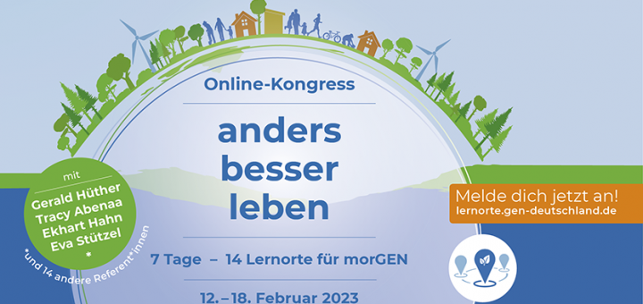 Auch dieses Jahr beteiligen wir uns wieder mit Beiträgen am großen Online-Kongress der Lernorte für morGEN. Nachhaltigkeit und gelingendes Leben aus 14 Lernorten für morGEN: Gemeinschaften und Dörfer des Wandels! Melde dich jetzt kostenfrei an: https://lernorte.gen-deutschland.de/