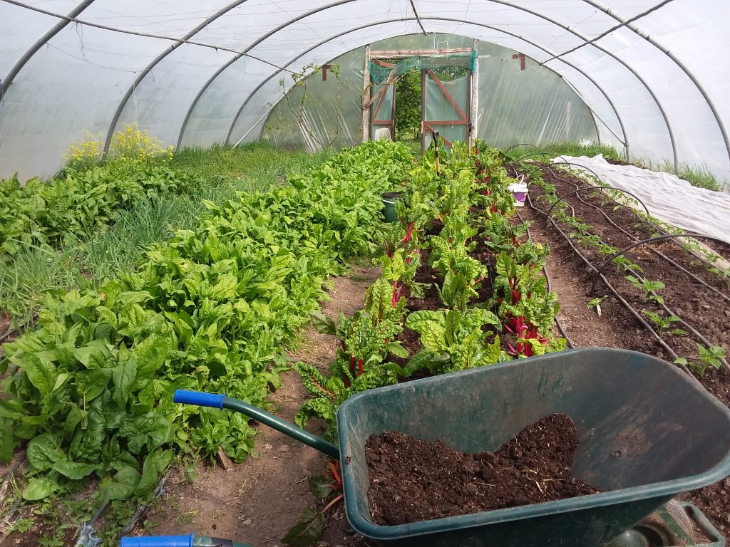 Am Freitag bekamen wir von Eileen und Pat (einer der beiden Landwirte, die die Community Farm betreiben) eine ausführliche Führung durch die Community Farm und das Bildungsprojekt Cuan Beo. Letzteres ist ein Ort, an dem alle Schulen, die das Ökodorf regelmäßig besuchen, etwas über ökologischen Landbau und die Bedeutung von Ernährungssouveränität und Selbstversorgung sowie über das Sparen von Saatgut lernen können. Ein Teil des Projekts ist eine Saatgutbank, die gentechnikfreies, biologisches Saatgut sammelt und an die Gemeinschaft in der Umgebung weitergibt. Die Gemeinschaftsfarm ernährt das ganze Ökodorf (insgesamt etwa 100 Menschen), und zwar das ganze Jahr über, dank der fünf Polytunnel auf dem Gelände und des Fachwissens der Bauern. Außerdem lernen die Freiwilligen hier, wie man Lebensmittel auf eine Art und Weise anbaut, die die Erde respektiert und die Resilienz der lokalen Gemeinschaft angesichts des Klimawandels gewährleistet. Das sind wichtige Fähigkeiten für die Zukunft, denn die Wetterverhältnisse werden immer unberechenbarer, und die Gemeinden werden nach Fachwissen suchen, um sich weiterhin selbst ernähren zu können.