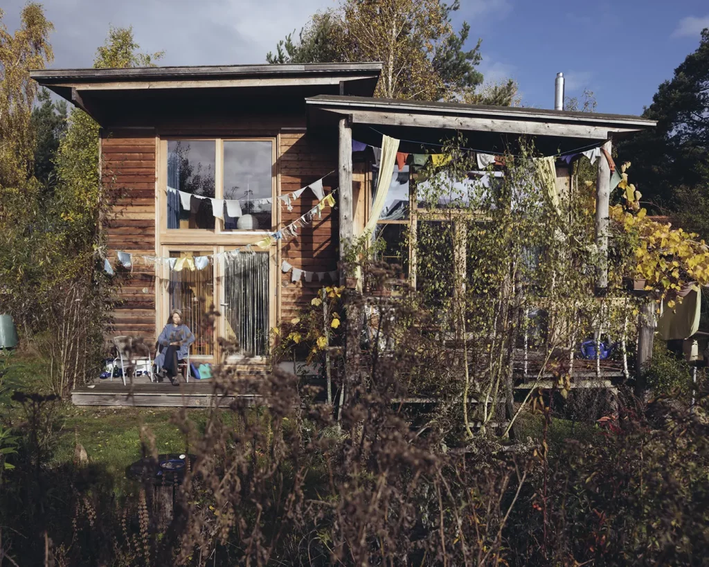 Pro Person sollen nur 16 m² Grundfläche versiegelt werden, daraus entstehen in unserer in der Regel zweistöckigen Bebauung dann 32 m² Wohnfläche pro Person. Dies umfasst alle Flächen, inklusive privater Flure, Küchen, Bäder, Wohnzimmer, etc. (Büroraum kann bei Menschen im Home-Office noch dazukommen.) So realisieren wir hier „Tiny Living“. Die vielgepriesenen Tiny Houses und Bauwagen, die wir hier auch haben, sind zwar eine Einladung zum einfachen Wohnen, aber haben tatsächlich einen deutlich höheren Flächenverbrauch pro Person als unsere Mehrfamilienhäuser, wegen der Abstände, die eingehalten werden müssen, etc.