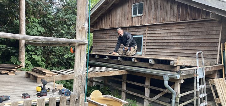 Einen extra Ruheraum gibt nicht. Doch nur für 4 Personen gab es bisher Liegen im überdachten Außenbereich. Nun legt unser Mitabeitswochen-Team unter der Leitung von Jörg und Rolando Hand an und erweitert die Möglichkeiten des Ruhens nach dem Schwitzen erheblich: 2-3 Plätze neben der Sauna und weitere auf dem Dach der Schuppeneingangs sind in den letzten Tagen entstanden. Sehr kreativ, unsere Handwerkenden. Einen herzlichen Dank – auch an alle Gäste der Mitarbeitswoche!