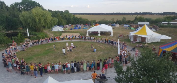 An diesem Wochenende sind 270 Gäste angereist. Gemeinsam verbringen wir eine Woche Sommercamp hier – in diesem Jahr unter der Überschrift „Low Waste – High Energy“. Das Motto hat uns angespornt, nochmal einige Aktivitäten zu entwickeln, unser Müllaufkommen zu minimieren. So wird / wurde für diese Woche Hafer- und Mandeldrin hergestellt, es gibt selbstproduzierte Gemüsechips, und viele andere Müll-Reduktion, Weiterverwendungs- oder Recycle-Ideen wurden umgesetzt.