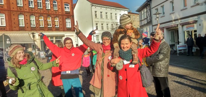 … und wir waren dabei! Beim ersten Flashmob zu „One Billion Rising“ (Eine Milliarde erhebt sich!) in Gardelegen, einer unserer nahe gelegenen Hansestädte! OBR ist eine weltweite Tanzdemonstration, die sich gegen sexualisierte Gewalt an Frauen ausspricht und jedes Jahr am 14. Februar getanzt wird. Weltweit ist oder war jede dritte Frau bereits Opfer sexualisierter Gewalt. Eingeladen sind alle Menschen mitzumachen und so fanden sich etwa 200 Menschen am Rathausplatz in Gardelegen zusammen.